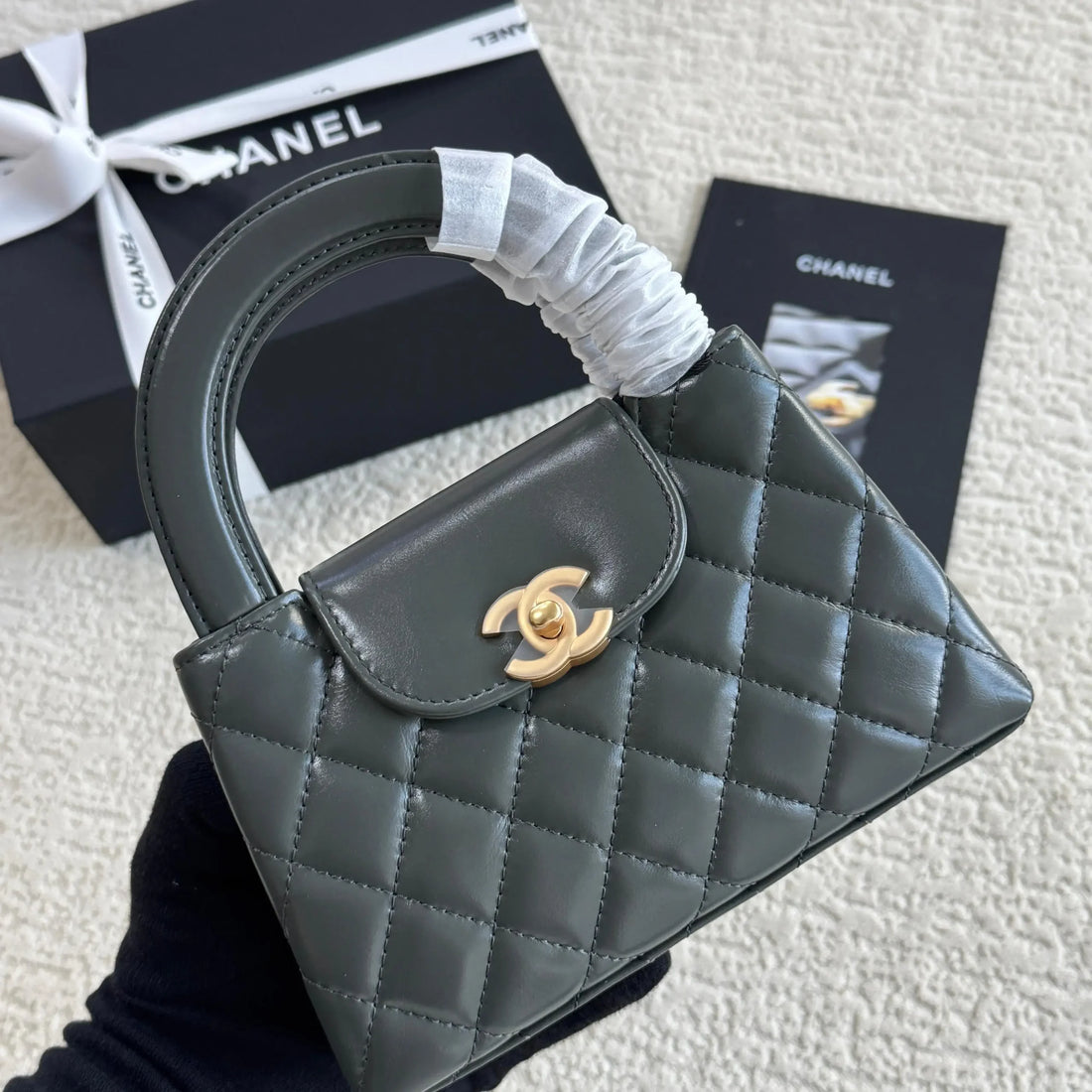 Chanel Mini Kelly Bag in Black Lambskin with Silver CC Lock
