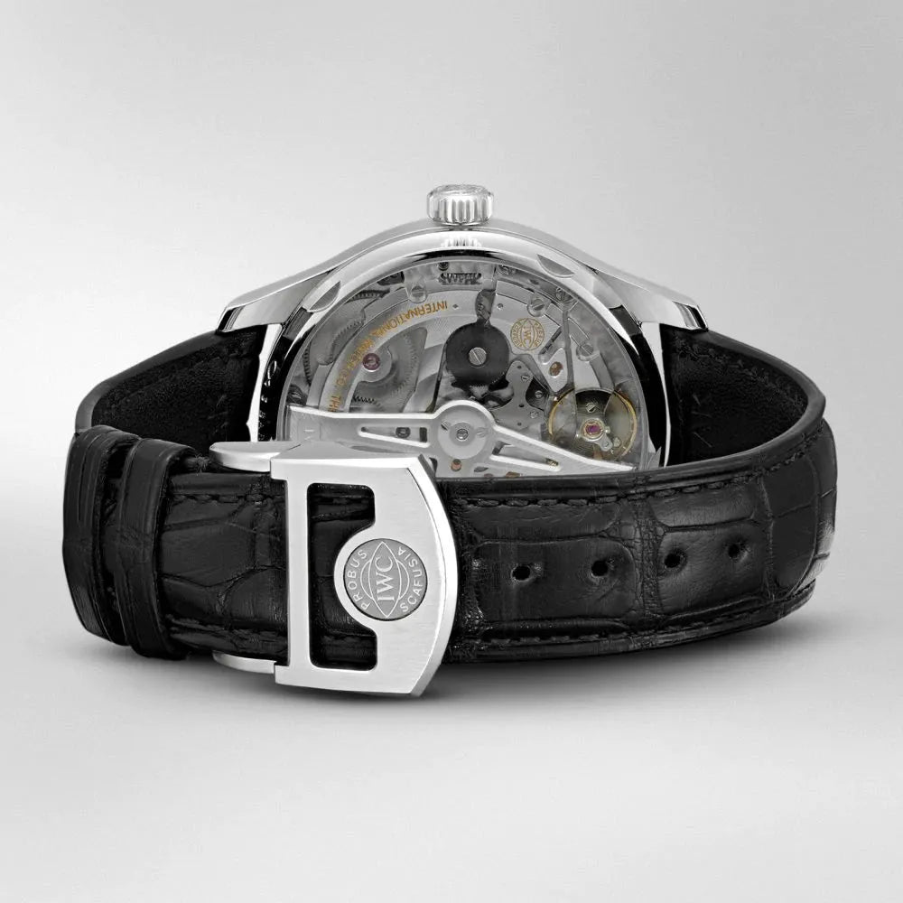 The IWC Portugieser Automatic (Ref. IW500710) is a go-to choice if you want a clean, upscale watch that feels substantial on the wrist but still reads like a classic dress watch. The 42mm stainless steel case and 14.2mm thickness give it real presence, while the Portugieser dial layout keeps everything balanced and easy to read. The dark blue dial is the highlight here, offering a richer, more modern look than silver, and it pairs well with both business and evening wear.