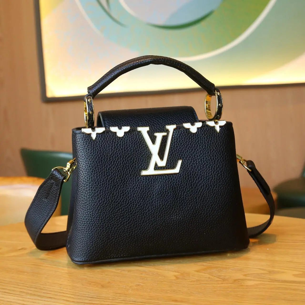 The Capucines BB 27cm is one of the most elegant “small but premium” bags in the Louis Vuitton lineup. It keeps a structured silhouette that looks polished in the UAE for business settings, brunch, and evening events, while the BB size stays easy to carry. What makes this version feel more special is the metallic Monogram Flower detailing along the top rim. It adds a jewelry-like finish without changing the clean Capucines shape.