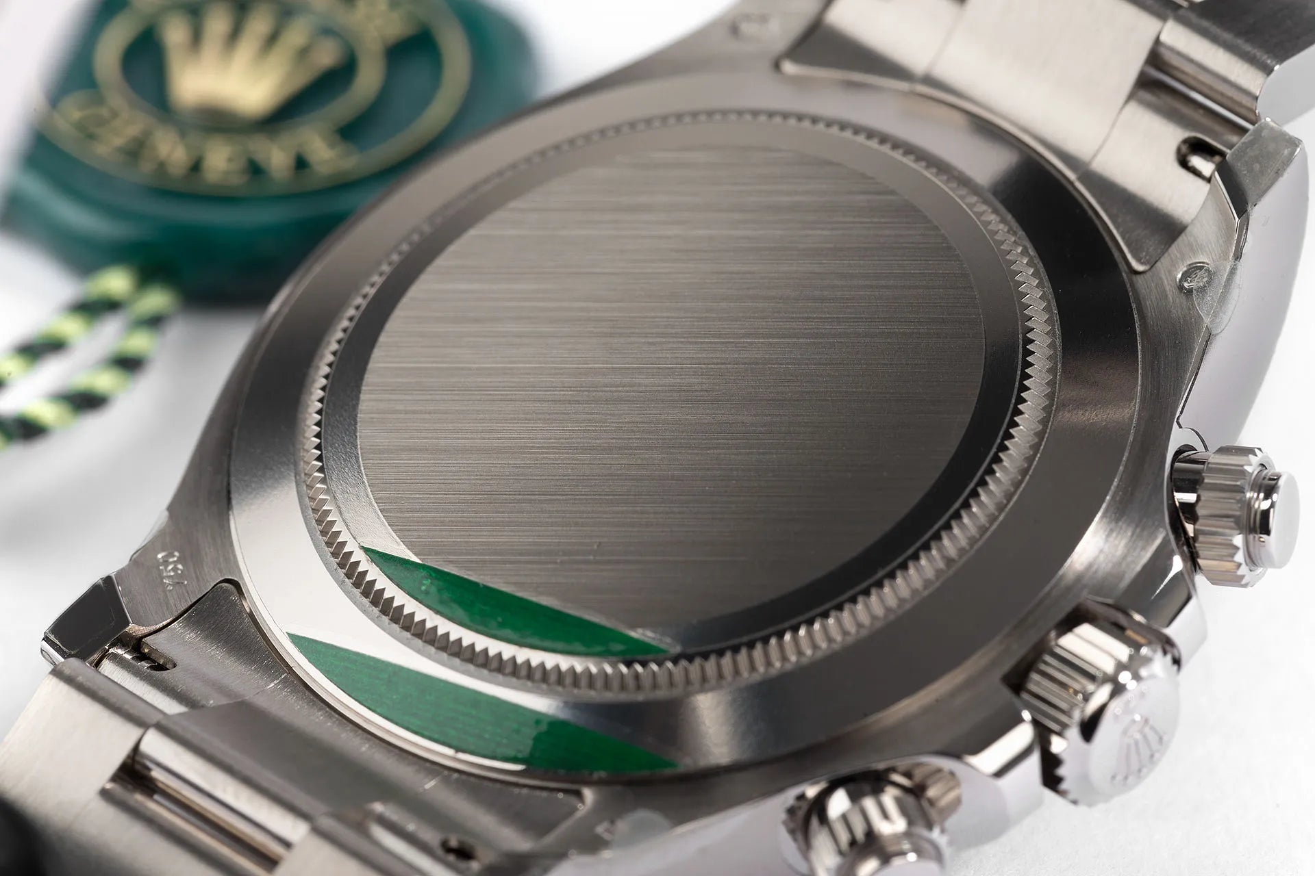 Bezel: Fixed 18 ct white gold with engraved tachymetric scale